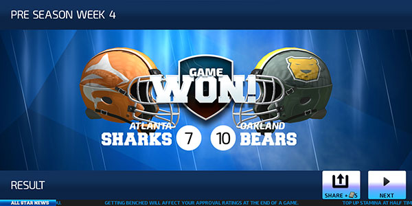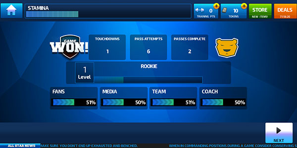 全明星四分卫官方版(All Star QB)是一款由国外游戏厂商Full Fat根据橄榄球这项运动所打造的体育经营类手游。从游戏名称中的全明星字样里我们就能大致了解一二,既然是全明星,那游戏中的镜头也必然不会只聚焦在某一个两个的橄榄球员身上,而是从更加广泛的角度来进行注视。而要做到这一点,只有一个身份最合理,那就是球队俱乐部的经理人。因此玩家们在全明星四分卫游戏中也正是扮演这样的一个的身份,然后通过不断地运营,比如招募优质橄榄球员、改善球员的生活设施、提升球队俱乐部的知名度等,直到建立独属于你的体育王朝。