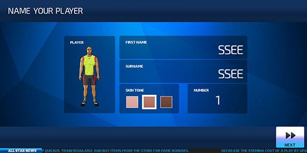9、新手引导结束后,自定义角色的姓和名,点击右下角NEXT按钮来正式开始比赛。