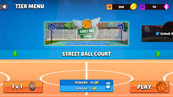 蠢萌扣篮2游戏上手简单,点击游戏右下角的PLAY根据需求来选择地图来进行游戏,玩家还可以点击左下角的1V1来选择模式进行游戏,选择好点击PLAY进行游戏,游戏中玩家可以通过左右箭头来进行跳跃移动,点击右下角的篮球按钮来进行投篮,当游戏上边的倒计时结束,游戏就结束了,游戏结束会统计积分,游戏获胜玩家还会获得丰富的奖励。蠢萌扣篮2游戏内还具有许多的角色等待玩家来进行解锁,还拥有轻松愉快地音效,让玩家能够感受到游戏的乐趣,更多游戏内容等玩家来感受。还在等什么,有兴趣的玩家快来下载游戏进行篮球比赛吧!