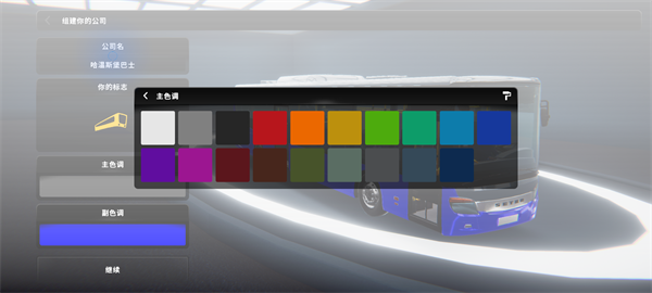 3、接下来需要组建一个公司,选择公司名、公司标志、车辆颜色等,选择好之后点击继续;