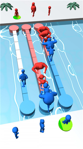 1、红蓝推手的目的是让玩家们打发闲暇时间并活动自己的大脑,玩家可以看到里面的人物角色有两种颜色,大家要在水桥上进行对决,红蓝推手不需要高频的操作和费劲思考就可以轻松上手。