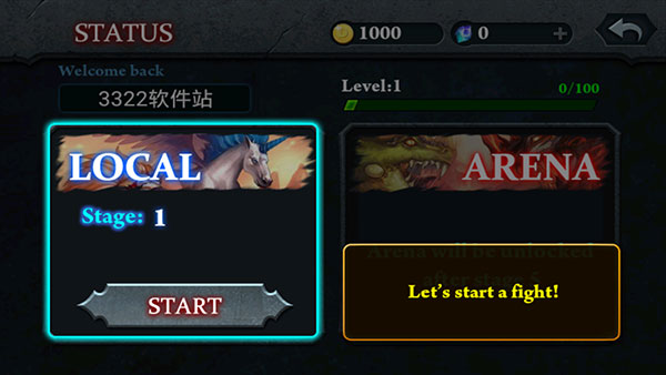 除了通过关卡以外,可以参加竞技场来获得额外的资源。竞技场获胜可以获得金币,升级可以获得钻石,有竞技点的时候可以多打竞技场,利用获得的资源来强化自己的兽王。竞技场只看攻击力和生命力,出战攻击生命最高的兽王即可保证自己的胜率。