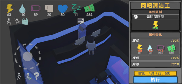 方块人的简单生活游戏是经典模拟经营类游戏“属性与生活”系列的全新手游,玩家将会前往一个新的城市,进行工作等相关增加属性方面的不断推进,给予我们自身的生活质量和所拥有的工作发展。你需要在游戏中寻找线索获知游戏情况,得到相应的信息后在众多选择中仔细考量,努力的生活好每一个步骤,找寻最适合自己的生存之路,让自己的生活慢慢的变好或者更糟。