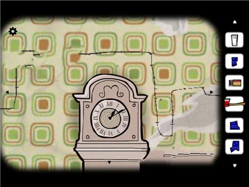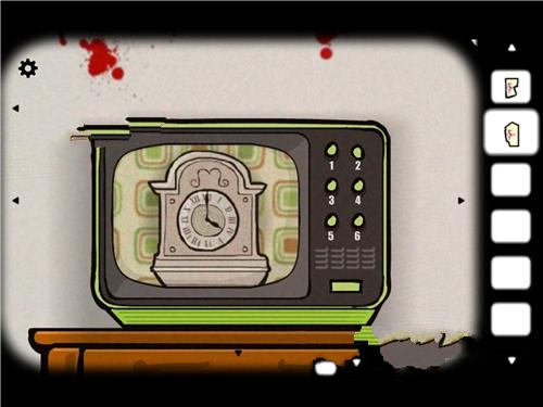 4、紧接着到了火炉房,同样是左上方的装置上拿到相片碎片,之后可以发现右下方桌子的一台收音机竟然是有电子钟的!上面显示着13:10.这个很重要,要记下来,拨动收音机也并没有更多发现。这时候我们迅速回到客厅,在中间大钟上调整时间,知道调为13:10分,此时下方的大钟柜子就能打开了,从里面可以取得最后一片相片碎片同时镜子里出现一个恐怖的黑色人影,不用管他,回到火炉房,用火柴点燃木头,拼好拼图,放入方块就通关了。