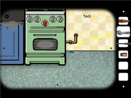 5、最后回到厨房,点近右下方的微波炉,用螺丝刀打开(这把螺丝刀是失传多年的万能螺丝刀),虾放进去,打开红色的开关后,用火柴点火,观赏微波炉,在打开的时候,微波炉里面一副风景画产生了,我们点进去,接着就能取得方块,接着就是回到火炉房间,把磁带团放炉子里,火柴点了,方块放回拼图后面,点击通关。
