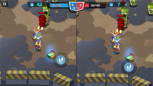 双人大作战是一款冒险射击游戏,游戏中玩家将化身成为一名超级特工,不停地点击右方按钮,把对手狠狠地拽向自己,玩家所要做的就是携手队友一起歼灭全部僵尸,即便过程中有一方阵亡,那么你也可以前往对方倒下的位置进行施救,循环往复,只要保证一人存活,基本上相当于无限生命。