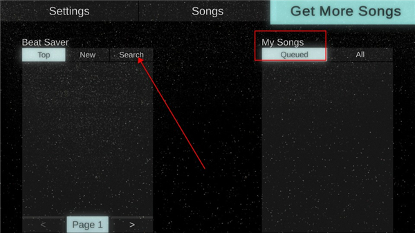 2、接下来点击可以看到我的歌曲,玩家可以自由添加,点击搜索进入页面。