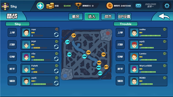 3、创建战队,训练选手,定制战术,征战各大联赛和杯赛;
