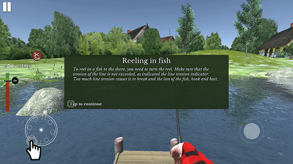 5、钓鱼——要把鱼卷到岸边,你需要转动卷轴。确保线材的张力没有超出线材张力指示器所示的范围。过于紧张的线会导致断裂,失去鱼,鱼钩和鱼饵。