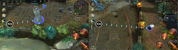 游戏采用双轮盘+锁定操作系统,在屏幕上形成一左一右两大核心操作区域,左侧为位移操作区、右侧为技能操作区,左右手可以同时对攻击、走位释放技能等多个动作进行实现,走位闪避技能、走位补刀HIT&RUN、补刀间隙接技能等等。