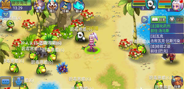 客户端特色包括清新主城设计、萌妹语聊、全新宠物登场以及丰富的社交系统(如拜师收徒、婚礼等)。勇者战场是游戏的一大亮点,每天晚上有固定时间开放,玩家可以参与2V2到16V16的战斗,采集资源并获得奖励。战场结束后会通过邮件发放经验、战功等奖励。