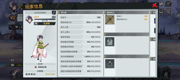 6、点击左上角头像按钮,还可查看角色的基础信息,了解角色的各个属性能力,能够让你更好的战斗。