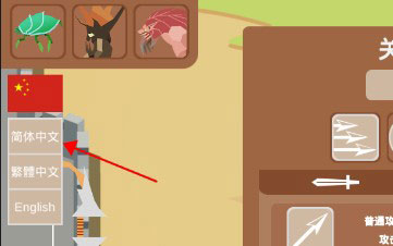 在如下图箭头指位置,点击国旗可切换至“简体中文”。