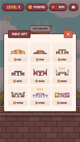 1、在店内添加各种设备,让店内更加完善,顾客吃完满意离开后,收集留下的金币。
