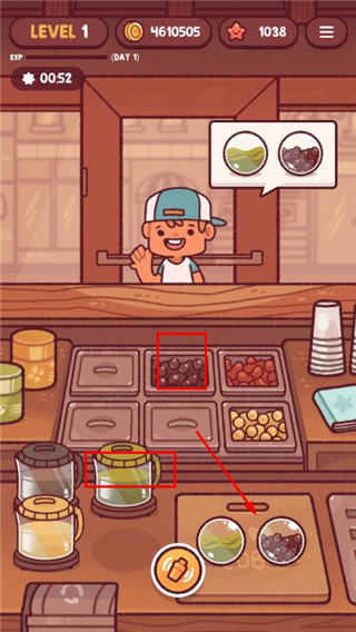 1、进入游戏之后,每天随机出现各种任务,完成后可以解锁新的配料,这里开始制作奶茶。