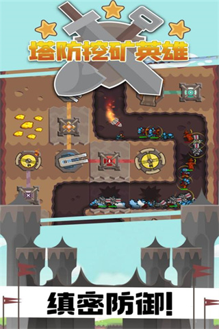 塔防挖矿英雄官方版是一款塔防与挖矿游戏相结合的策略塔防类型的手游,游戏具有全新的冒险与挖矿,建筑威力强大的建筑物射击不同敌人,不断挖掘深埋地底的金矿,达到人生巅峰,玩家可以自由选择对战模式,看怎样才能挖到更多的宝藏,非常的简单有趣好玩,塔防与挖矿游戏相结合的新型手游,游戏中需要玩家动动聪明的大脑。游戏中需要玩家开动自己聪明的大脑,建造各种威力强大的建筑物射击各种不同的敌人,并且还能不断挖掘深埋地下的金矿,成为最后的赢家;游戏中还可以直接获得想要的道具,更好的参与游戏里的挑战,游戏更适合喜欢塔防和挖矿元素的玩家,能让玩家一边体验策略塔防的乐趣,一边体验挖矿的乐趣,而且游戏还为大家设计了两种不同的游戏模式,方便玩家做选择。