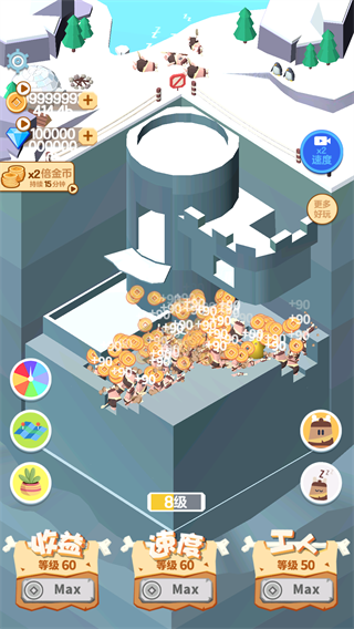 2、升级“速度”、“收益”,速度可以提供鼹鼠们的工作效率,收益则保证了玩家处于离线状态的效益增长,再则就是完成“工人升级”,在这里分别可以提升工作速度、耐力和挖掘暴击率。