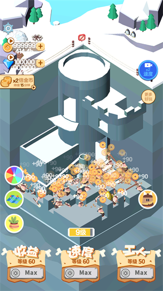 2、每天都要提升效率,招募人手就能得到更多钻石,购买高级挖掘工具;