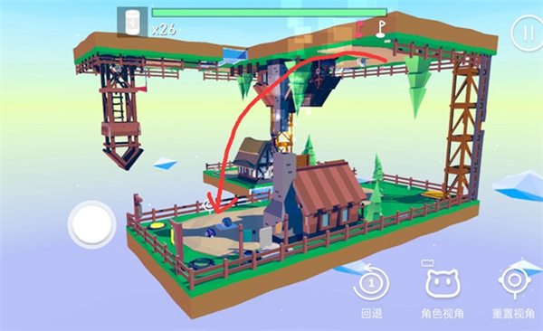 6、从原来的下平面“跳”上去,重叠空间的引力通关机关触发上下面切换,而非重叠部分的空间引力则固定为那部分平面的引力,我们需要回到原来的下平面过河的那端过去。