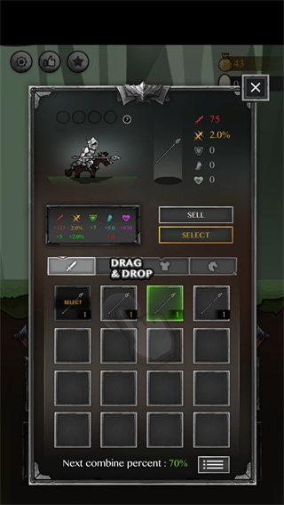1、丰富不同的武器装备和技能,收集极品装备打造最强骑士。