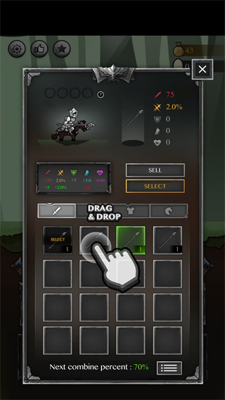 4、装备的升级很简单,采用了合成的玩法,只需将相同的武器拖拽在一起就可以完成合成并升级。