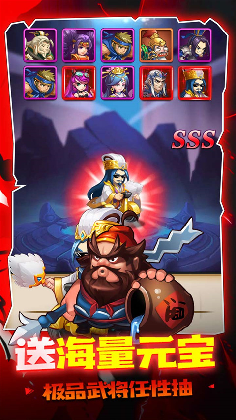回合制对战,解放双手,释放大脑,武将克制,布置阵法,合体绝技,动感特效,轻轻一点,扫平对面满血小兵.