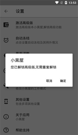 2、如果您已经激活冰箱免Root模式/黑域(黑阈 黑阀)/Shizuku Manager,那么也可以直接使用小黑屋