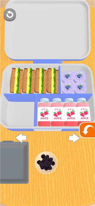 如果你是整理收纳游戏爱好者,如果你对制作西式午餐情有独钟,如果你喜欢简单解压的游戏,那么不妨来试试午餐便当游戏手机版,这是一款以整理午餐盒为背景的模拟体验游戏,游戏在画面上采用了3D立体的卡通画风,第一人称视角带给玩家沉浸式体验,饭盒上的光泽、食物摆放好的阴影等特效也是一应俱全。寿司、生鱼片、蛋糕、草莓、三明治、猕猴桃、干果等食物组成了午餐盒里最普通的一餐。简单的木纹背景,造型多样、配色适中的餐盒,不同分割方式的布局,到处充满着意料之外的惊喜。同时午餐便当游戏手机版采用了模拟体验的玩法,玩家需要将提供的食材整齐的摆放到午餐盒的不同位置。游戏本身难度较低,对玩家非常友好,很多食物彼此之间都可以在同一个格子里共存,即使胡乱摆放也能轻松完成关卡,如果你喜欢摆放整齐的午餐盒,还是建议好好思考一下餐盒内的结构与现有的食材。喜欢的玩家还在等什么,不妨下载体验一下试试看吧!