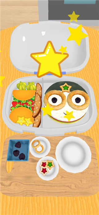 1、有趣的便当制作模拟游戏,卡通绚丽的色彩,增加乐趣;