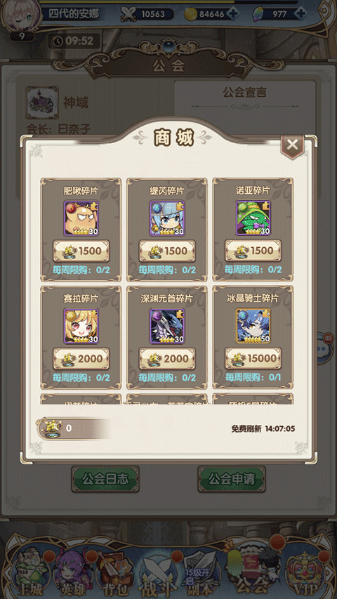 团结之力优先购买冰晶骑士碎片,没需求时留着点公会科技