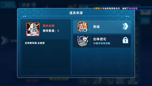 在数码宝贝图鉴中可以查看任一数码宝贝的获取来源,方便玩家确定自己的目标。