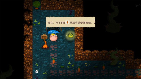 4、吃下三根胡萝卜,然后开始吟诵卷轴,可以召唤你的小弟。