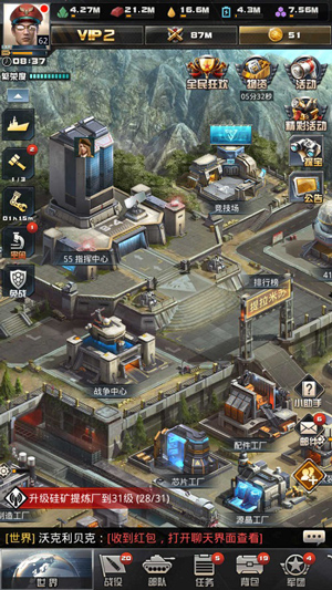 包含等级,统帅,繁荣,军衔,军官,做为一个前期只是小小V1的我,比较重视等级,每天不要浪费体力,好好刷战役,排兵这是必须的,以最少的晶,去得到更多经验。