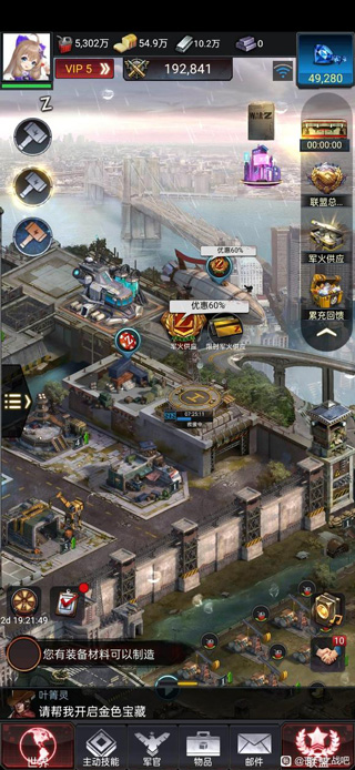 之后左下角。游戏指引对讲机完成第三章任务点击领取。很简单。然后你有了教官和商人。[说明]。这款游戏并没有五六星高级采集军官和训练官。所以必须是这两个。得到了这两个。首先是教官。点军官就会出来。找到教官。点军阶。右下角有个箭头点一下。军官二阶。格外增加改装车训练速度20%。然后退出。点射手训练营。[教官驻扎1管4兵营]驻扎射手训练营里就不用管了。然后是基地。基地驻扎的是商人。然后花钻买机械师卡片。300就够。买完后进到军官选项。找到机械师解锁。吧机械师驻扎到后勤中心。