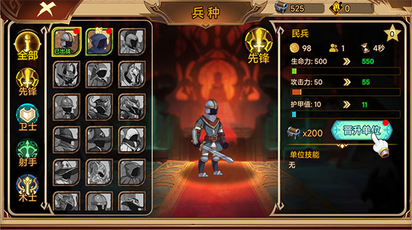 火柴人作为一个画风简单的游戏题材,靠着简单的角色画风却并不简单的游戏玩法和游戏内效果,带给玩家不一样的游戏体验的同时,展示火柴人的魅力。今天小编为大家带来火柴人军团战争官方正版,这是一款以火柴人为主体的冒险策略塔防游戏,游戏采用横板的战斗模式,拥有多个场景,玩法非常简单,上手很快。在游戏中玩家将作为一名火柴人指挥官,亲临激烈刺激的战场,打造自己的火柴人军团,不断指挥火柴人军团进行作战,你需要抵挡住敌人的进攻,并且找机会进攻敌人的大本营,运用各种策略搭配一个超级军团击败对手。在这里你可以训练出弓箭手、法师等各种强大火柴人兵种,在战斗开始之前用仅有的矿工进行采矿,并用获得的金币来召唤你需要的兵种进行战斗。与此同时,游戏里加入了各种新的元素,各种策略和各种不同类型的士兵,都需要你来深思熟虑的进行搭配。比起同类游戏来说,火柴人军团战争游戏不仅根据策略性,对玩法的创新也有着独特趣味。此外,火柴人军团战争游戏中精彩的剧情内容设定,让你无时无刻沉浸其中,超级刺激的打斗场景和特效更是让人眼前一亮。而且游戏中还拥有各种强大的科技,通过不断的升级,以此提高士兵单位的攻击力等各个属性,感兴趣的小伙伴快来下载体验一下吧。