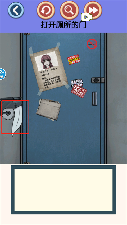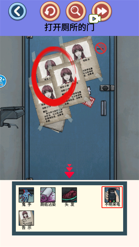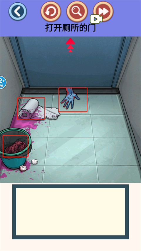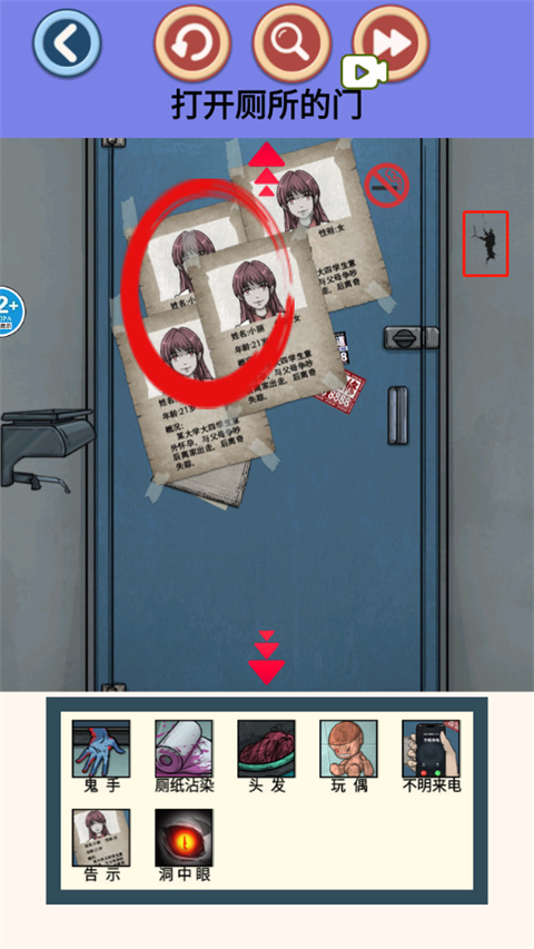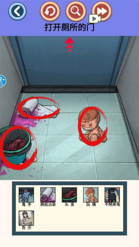 2、纸巾掉落后,点下方可以找到鬼手、厕纸沾染、头发;