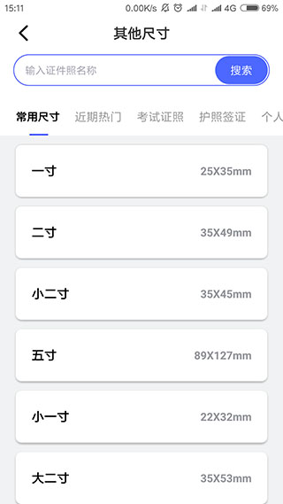 2、专业证件尺寸规格不论是常规的一寸、二寸、小一寸等尺寸,还是学生证、简历证、驾驶证,亦或是各类考试证件等证照需求都能得到满足。软件通过AI大数据分析智能推出热门证件照尺寸以供选择,绝不出错