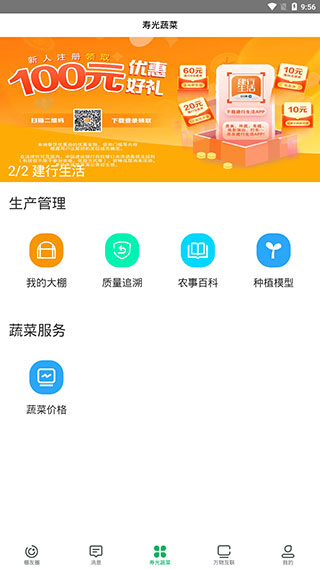 3、而在【寿光蔬菜】页面,我们还能使用各类生产管理和蔬菜服务方面的功能。