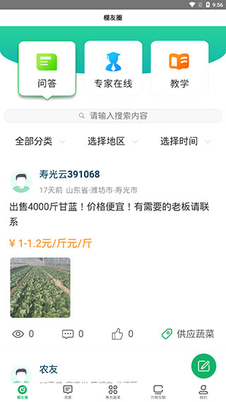1、进入软件之后,我们就能在【棚友圈】看到一些用户问答、专家在线等方面内容。
