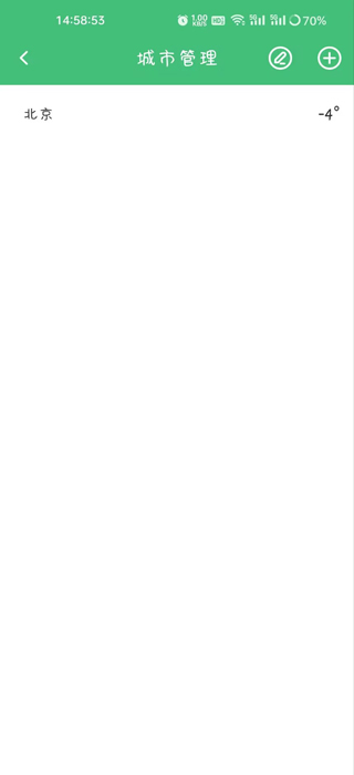 2、点击右上角的“+”号按钮,进入添加城市界面。