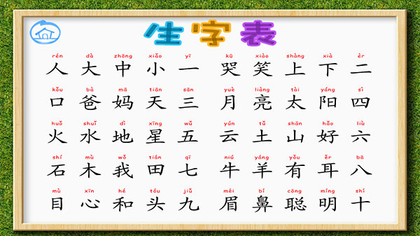 8、“生字表”内可以快速看到第一册的全部的汉字和读音。