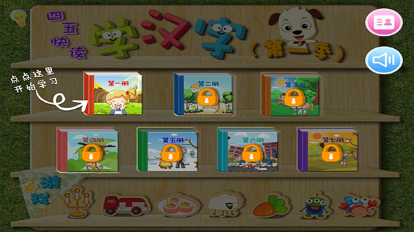 3、为了让孩子产生对汉字学习的兴趣而设计了识字游戏吸引孩子的注意力。