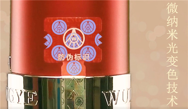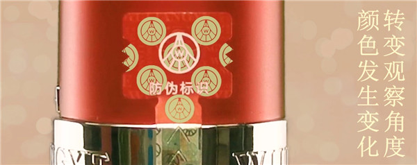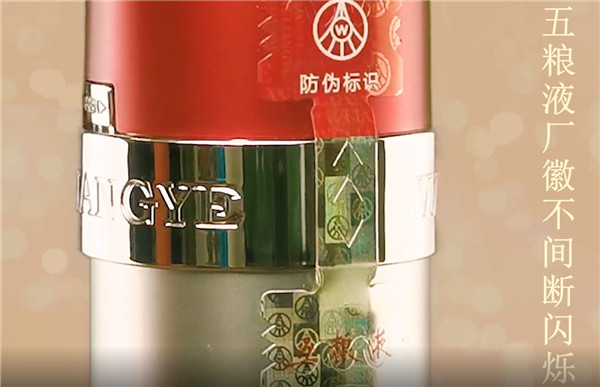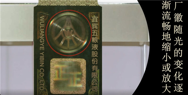 4、将厂徽对着光源观察,五粮液厂徽不间断闪烁。