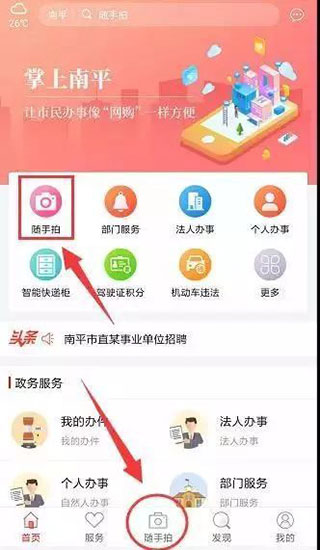1、点击“掌上南平APP”首页中的“随手拍”功能参与活动