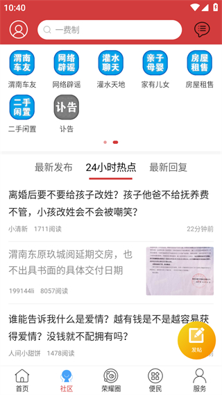 荣耀渭南网App专为渭南地区市民打造的一款本地资讯阅读和综合性便民服务应用,提供与生活密切相关的各种信息和实用服务,是渭南市民日常生活的重要工具和社交平台,提升了用户的本地生活体验,以接地气的内容和丰富多彩的线下活动深受渭南市民喜爱。