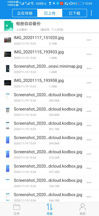 KODBOX提供了相册自动备份功能,可以将手机中的多媒体文件自动备份到云端。 通过【我的】>【自动备份】,可以进行备份设置后,开启相册备份功能。 开启后可以传输页面对相册备份的进度进行查看。