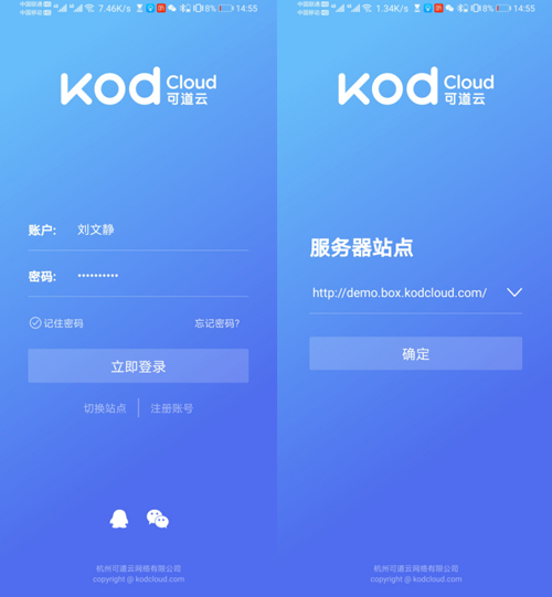 因为可道云KODBOX是私有云软件,不同系统服务器地址有所不同。首次通过KODBOX APP登录系统,需要输入站点信息。在登录页点击【切换站点】进入服务器站点设置页,然后填入正确的服务器地址。用户可以跟管理员联系取得相应的服务器地址。
