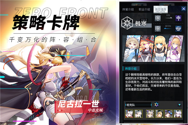 1、零之战线是一款二次元放置类手游,玩家作为军校毕业的优等生,将指挥武器少女战队与被污染的机械兽战斗,在夺回地面控制权的同时,迎击与调查隐藏在深处的秘密。现在,为了维护人类的文明,请战斗吧!