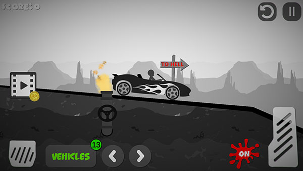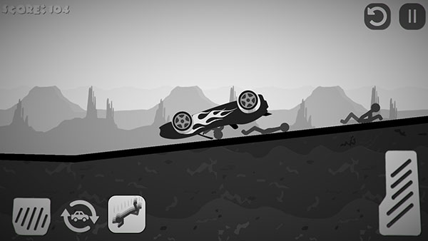 2、本关挑战的是驾驶汽车来撞击火柴人。左下角为刹车,右下角为油门。
