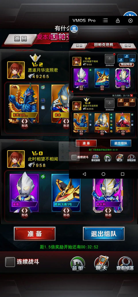2、开小号一起刷因帕克,没有两个手机的话可以下载个VMOS Pro,和小号加好友打能避免匹配慢的情况,亲密值上来了还能多拿奖励。